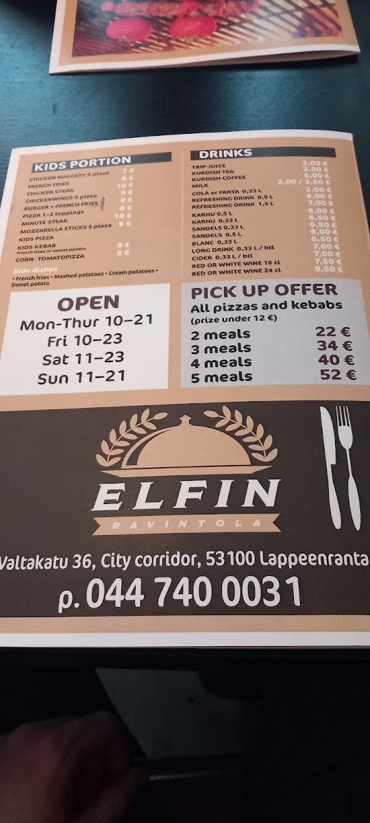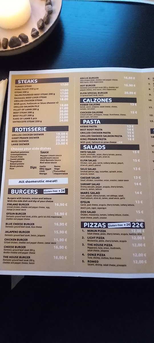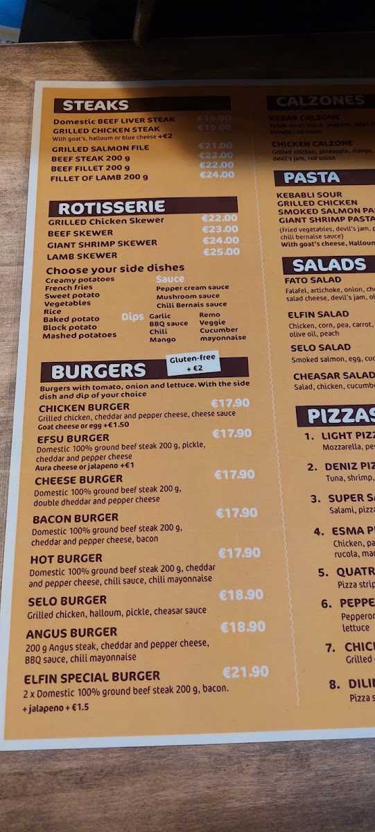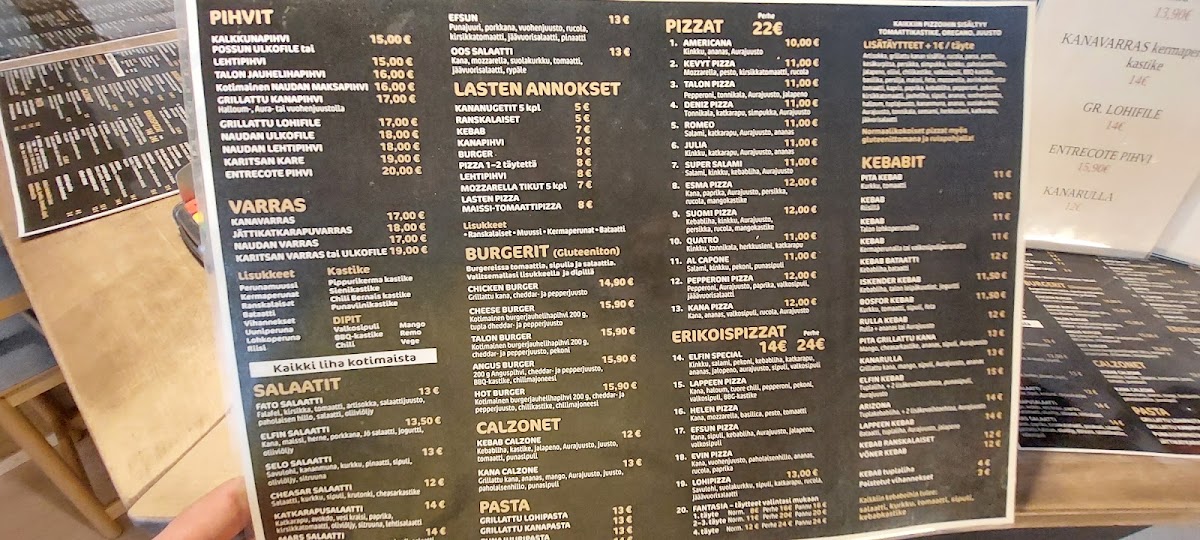 Ravintola Elfin’s menu is a satisfying blend of hearty comfort food and refined flavors, each dish thoughtfully prepared to highlight its ingredients. The Talon Burger and Cheese Burger stand out with their perfectly grilled patties and fresh, flavorful toppings, offering classic satisfaction at a generous portion. For those seeking a more substantial main course, the Halal Beef Steak and Rice delivers tender, well-seasoned meat accompanied by fluffy rice, balancing spice and richness beautifully. Seafood lovers will appreciate the BBQ Salmon with Mashed Potatoes, where the smoky glaze complements the creamy texture of the potatoes without overpowering the natural flavor of the salmon. Meanwhile, the Kebab Bataattiranskalaisilla introduces a playful twist, pairing savory kebab meat with the sweet crispness of sweet potato fries, resulting in an unexpectedly harmonious combination. Overall, the menu at Ravintola Elfin offers both familiar favorites and inventive takes, maintaining quality and flavor across each dish while catering to a variety of tastes and appetites.